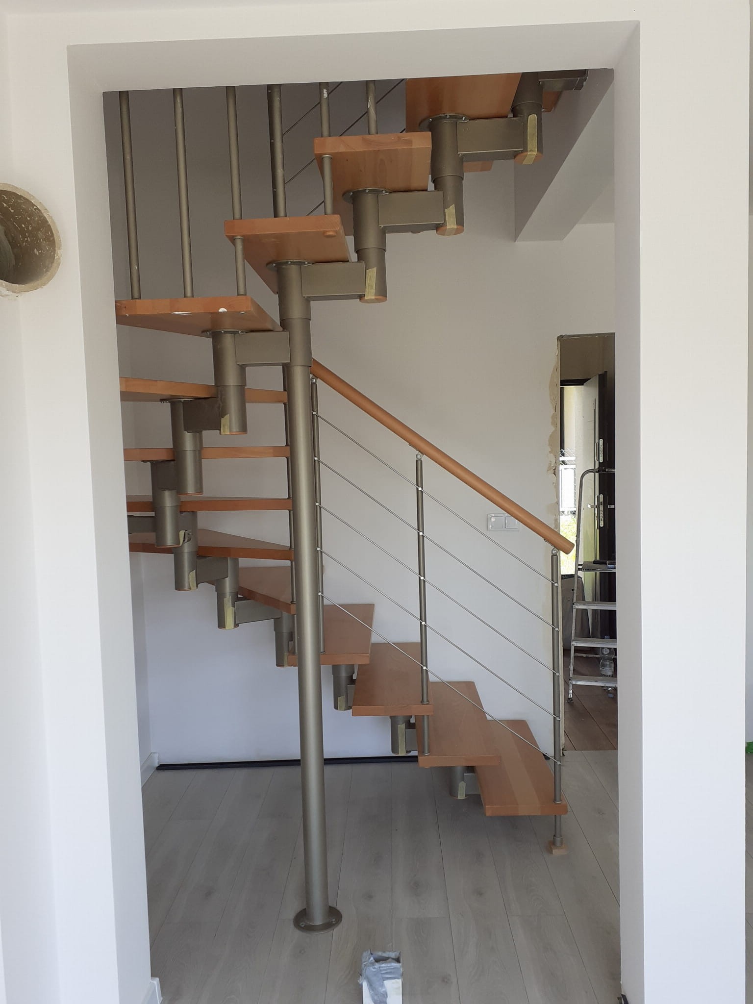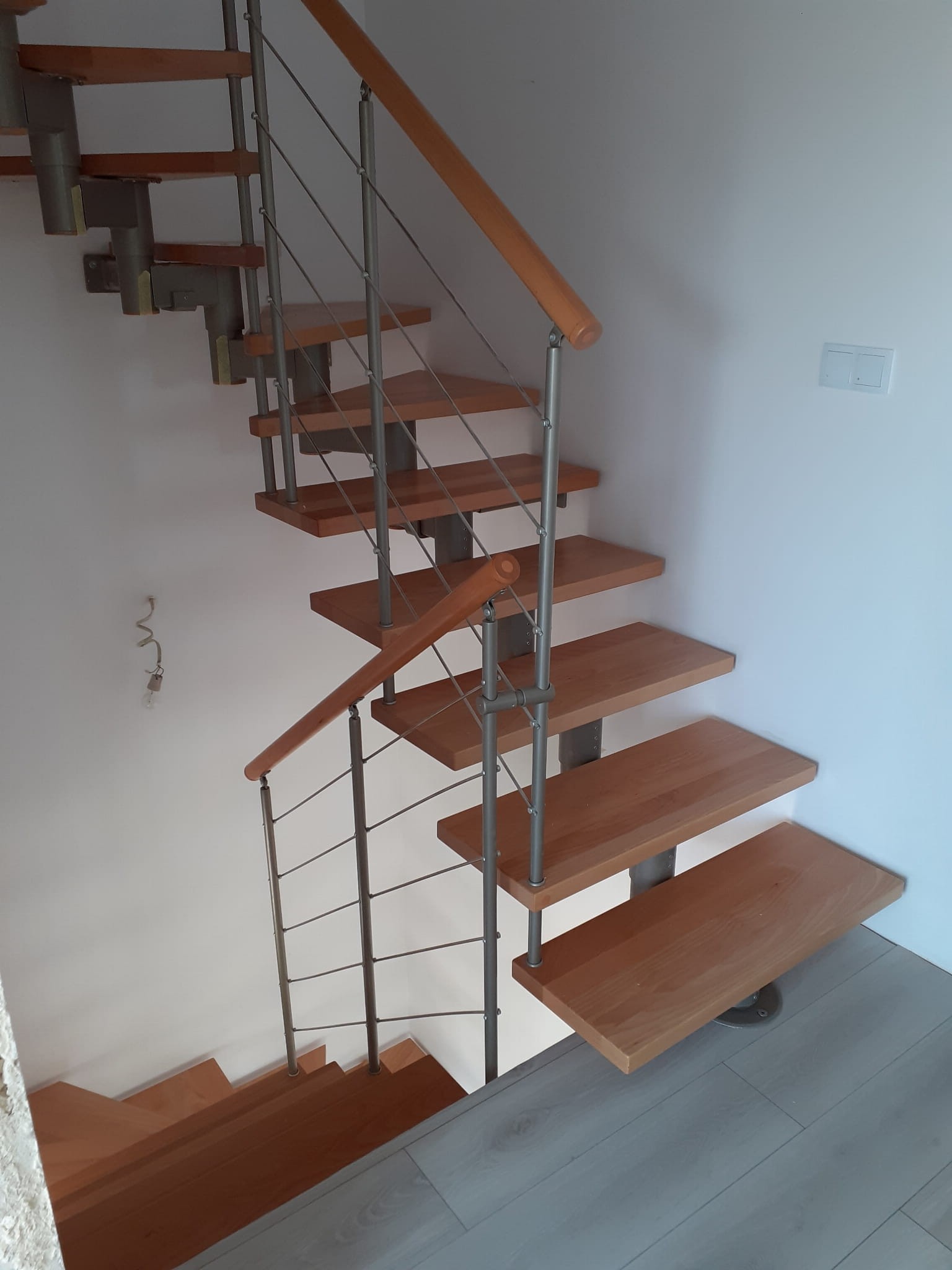 Schody sa odporúča inštalovať k stene, do vzdialenosti 5 cm od nej, čo umožňuje inštaláciu kotiev. V prípade, že stena nevydrží kotvenie, treba alternatívne použiť podperný stĺp. Pre voľne stojace schody sa plánuje použitie opornej tyče, ako aj zábradlia na oboch stranách, ďalšie možnosti na požiadanie.