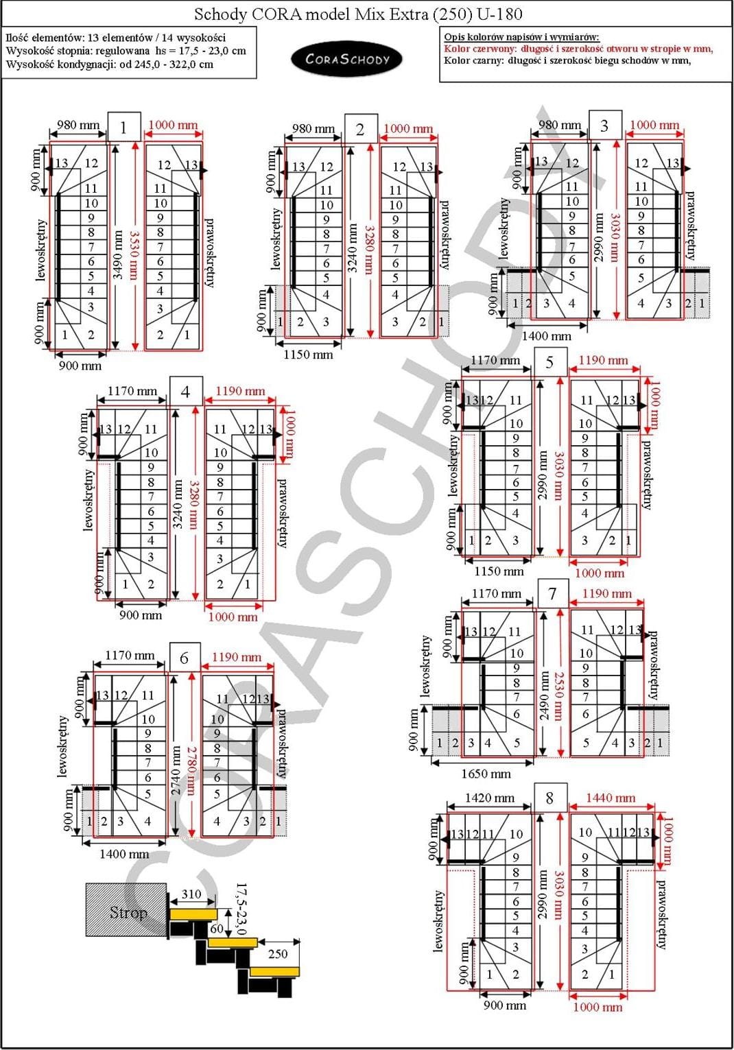 Schody Mix Extra 06 je možné namontovať v jednej zo 52 konfigurácií, plne prezentovaných výrobcom. Tento model má originálnu úpravu U-180, pravú aj ľavú. Jednoduché ošetrenie je možné objednať po pridaní anotácie do objednávkového formulára.