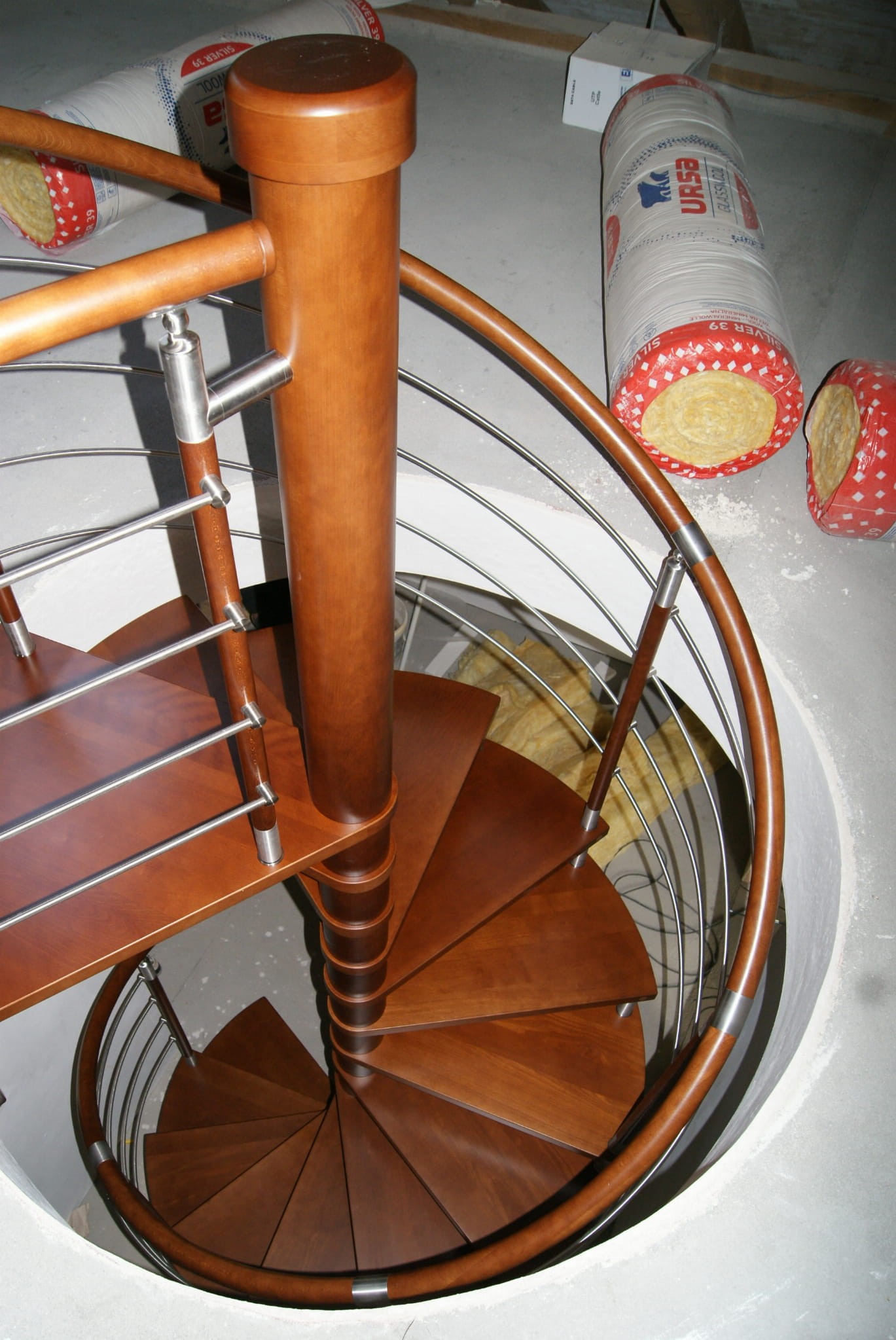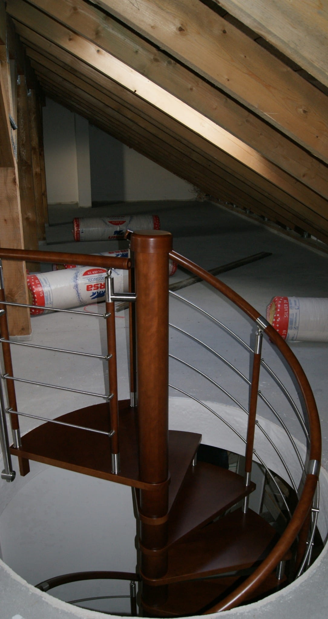 Nabízená točitá schodiště pasují do dvou typů otvorů ve stropě a v závislosti na nich mají různé podesty. Trojúhelníkové podesty zapadají do kulatých otvorů. Trojúhelníkové a lichoběžníkové plošiny jsou přizpůsobeny čtvercovým otvorům. Schody v tomto modelu mají pravou a levou úpravu. Lze je namontovat univerzálně v závislosti na koncepci.