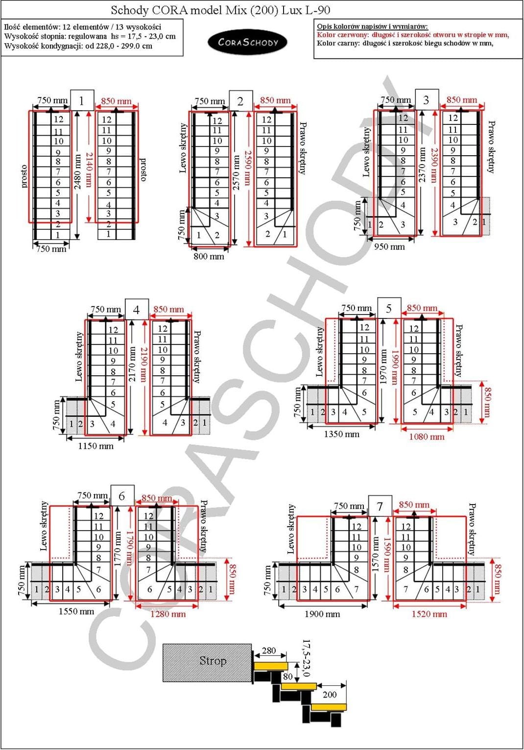 Schody Mix 200 lze instalovat do jednoho z 24 systémů prezentovaných výrobcem. Úprava schodiště je v původním torzním tvaru L-90, vlevo nebo vpravo, stejně jako neobvyklý rovný postup - v tomto případě je třeba do formuláře přidat příslušnou anotaci.