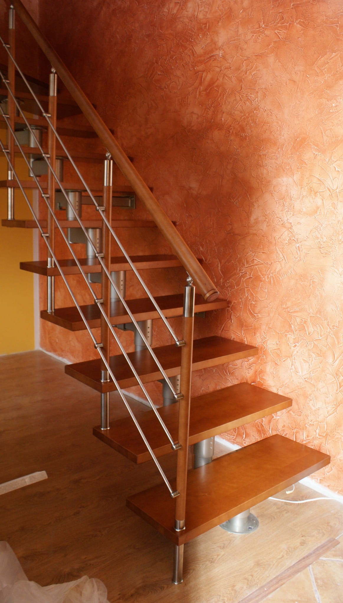Schody se doporučuje instalovat ke stěně, do 5 cm od ní, což umožňuje instalaci kotev. Pokud stěna kotvení nevydrží, je třeba použít nosný sloup. U volně stojících schodišť se počítá s použitím nosného sloupu a také balustrády chránící obě strany, další možnosti na vyžádání.