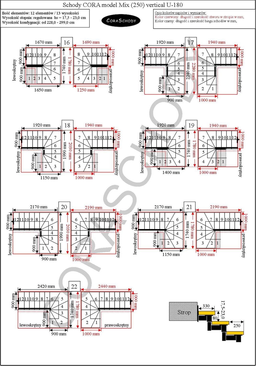 Vertikální schody Mix 250 lze instalovat v jedné ze 44 konfigurací, které všechny uvádí výrobce. Tento model má originální úpravu U-180, pravou i levou. Jednoduchý postup je možné objednat po přidání anotací do objednávkového formuláře.