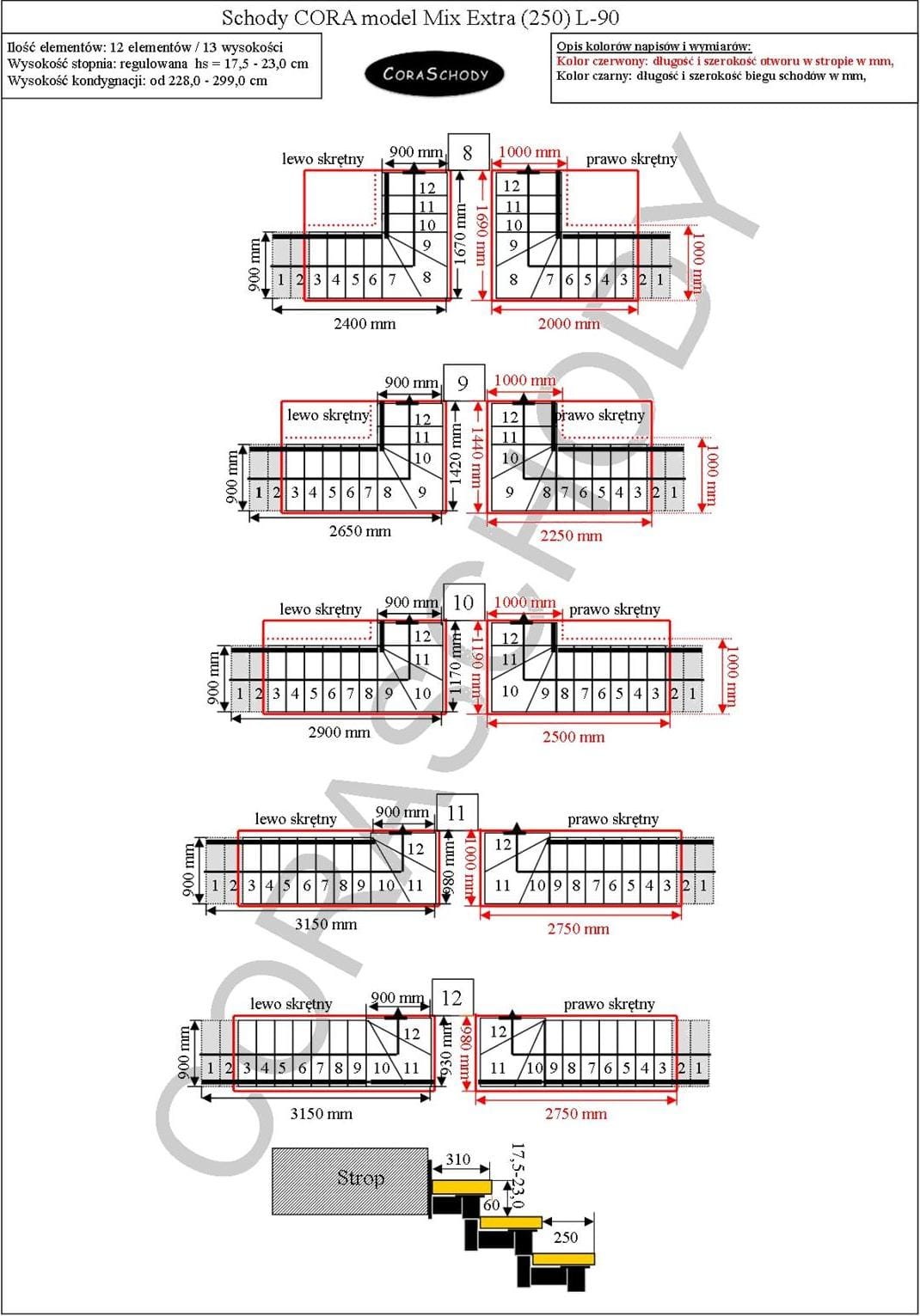 Pokud schody nelze upravit dle níže uvedených schémat, vyrobíme schody na míru.