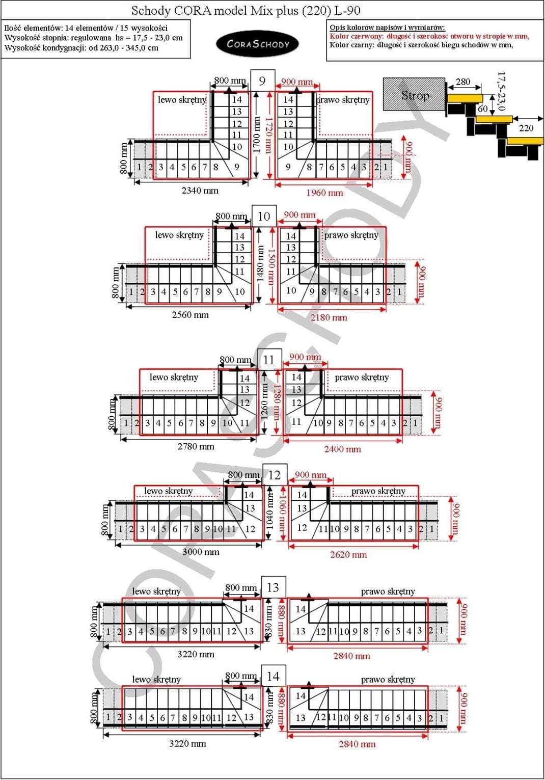 Pokud schody nelze upravit dle níže uvedených schémat, vyrobíme schody na míru.