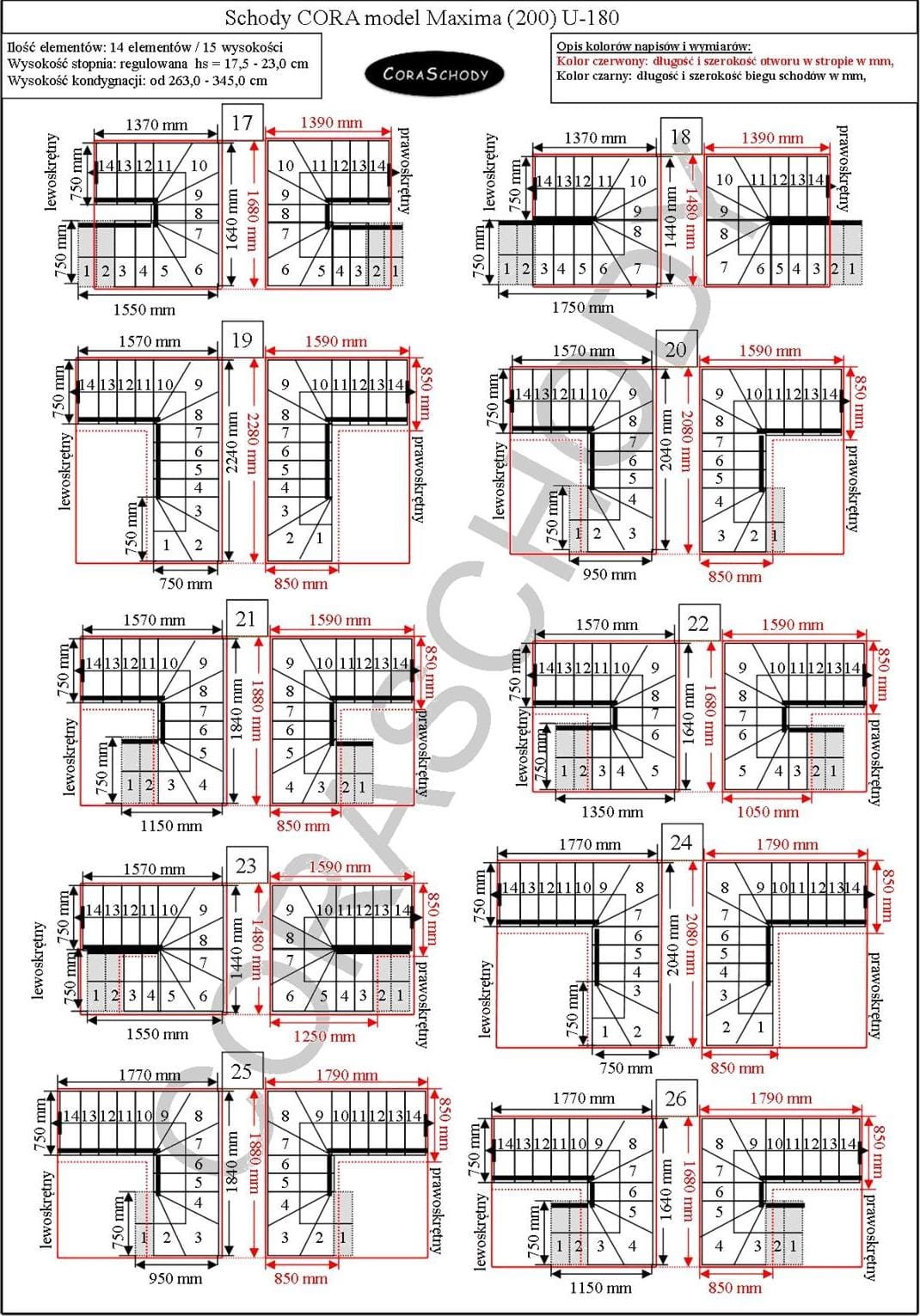 Schody Maxima 04 lze namontovat v jedné ze 44 konfigurací, plně prezentovaných výrobcem. Tento model má originální úpravu U-180, pravou i levou. Jednoduché ošetření je možné objednat po přidání anotace do objednávkového formuláře.