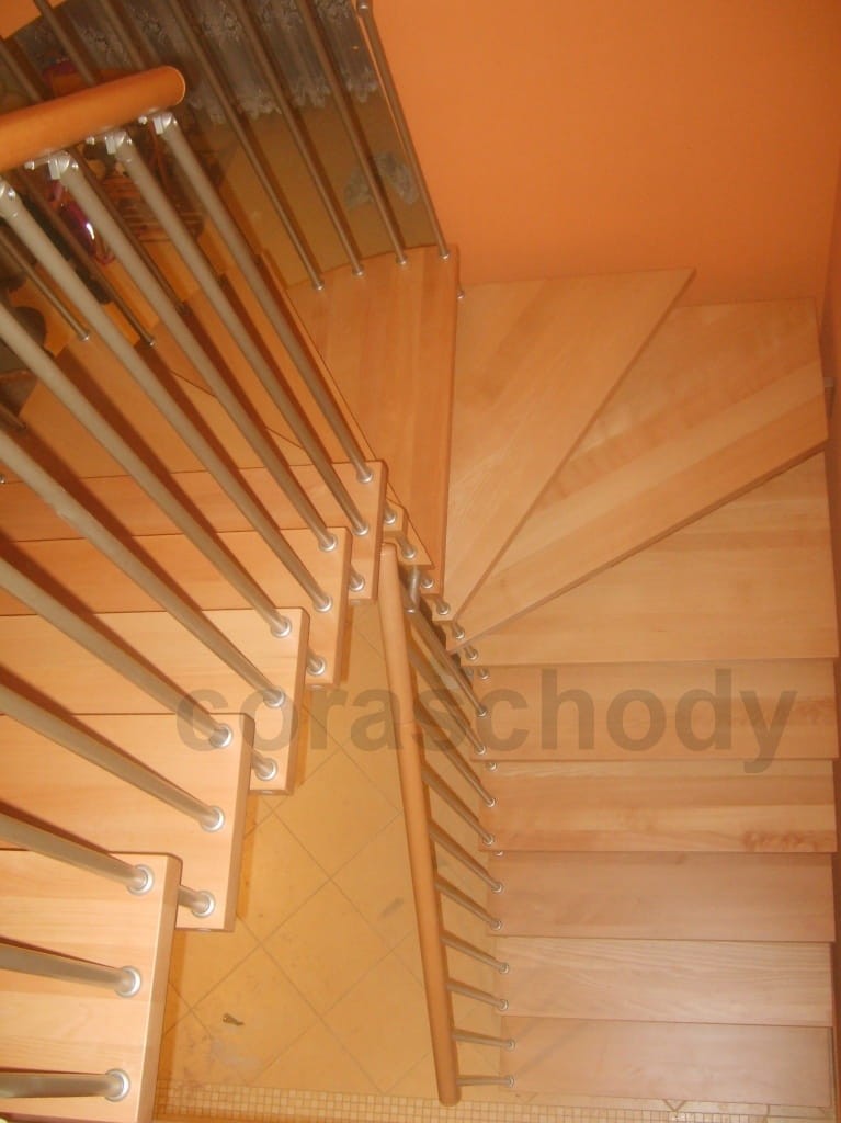 Povrchová úprava dřeva: v ceně schodů (ilustrační obrázek na buk / buk bezbarvý lak) nebo obarvené do vybrané barvy z palety barev dřeva