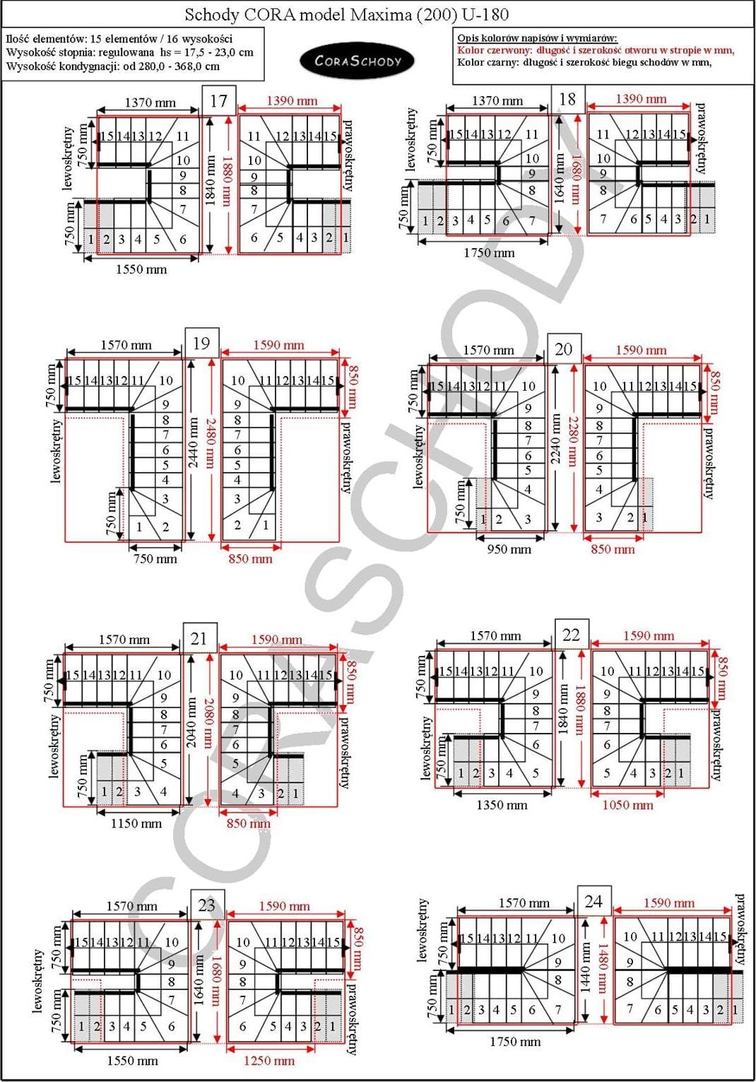 Schody Maxima 06 lze namontovat v jedné ze 44 konfigurací, plně prezentovaných výrobcem. Tento model má originální úpravu U-180, pravou i levou. Jednoduché ošetření je možné objednat po přidání anotace do objednávkového formuláře.