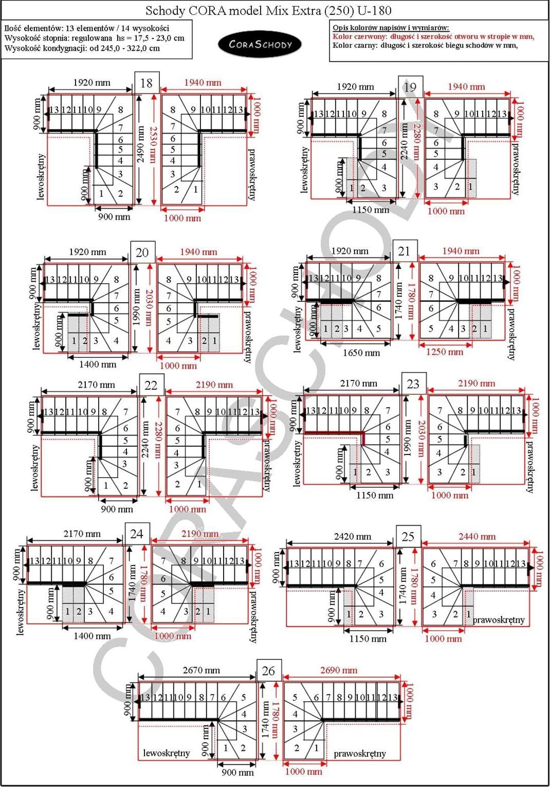 Schody Mix Extra 06 lze namontovat v jedné ze 52 konfigurací, plně prezentovaných výrobcem. Tento model má originální úpravu U-180, pravou i levou. Jednoduché ošetření je možné objednat po přidání anotace do objednávkového formuláře.