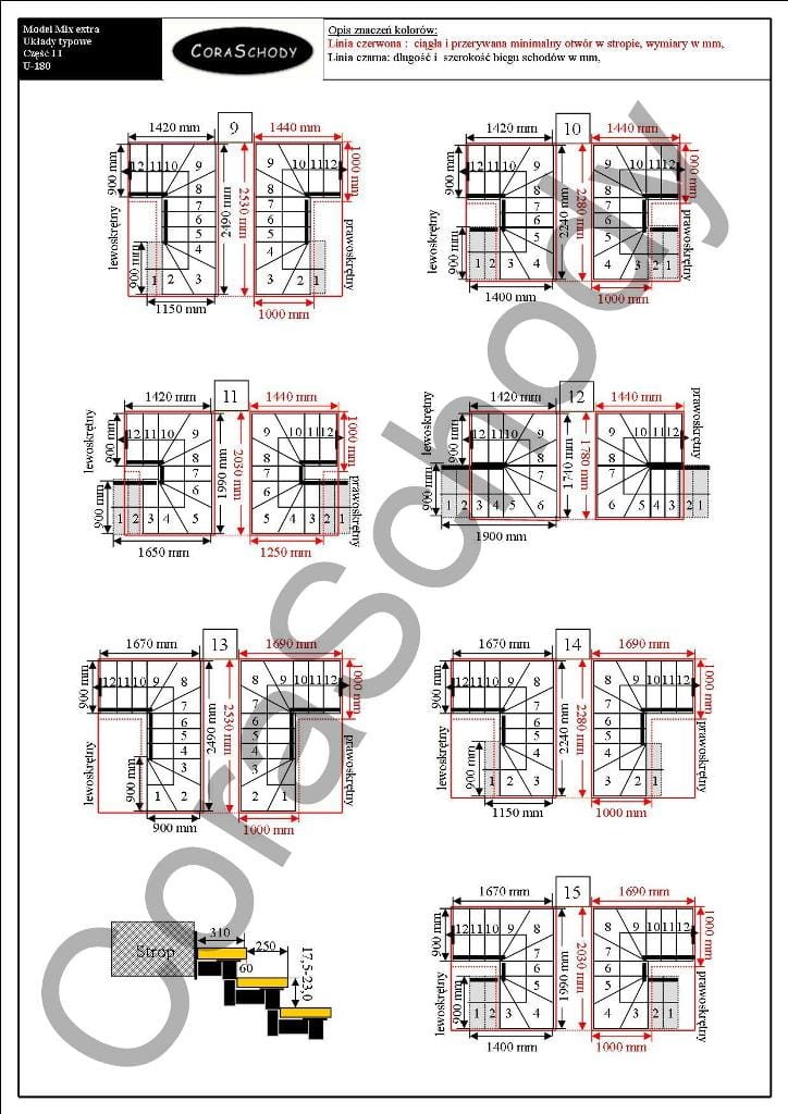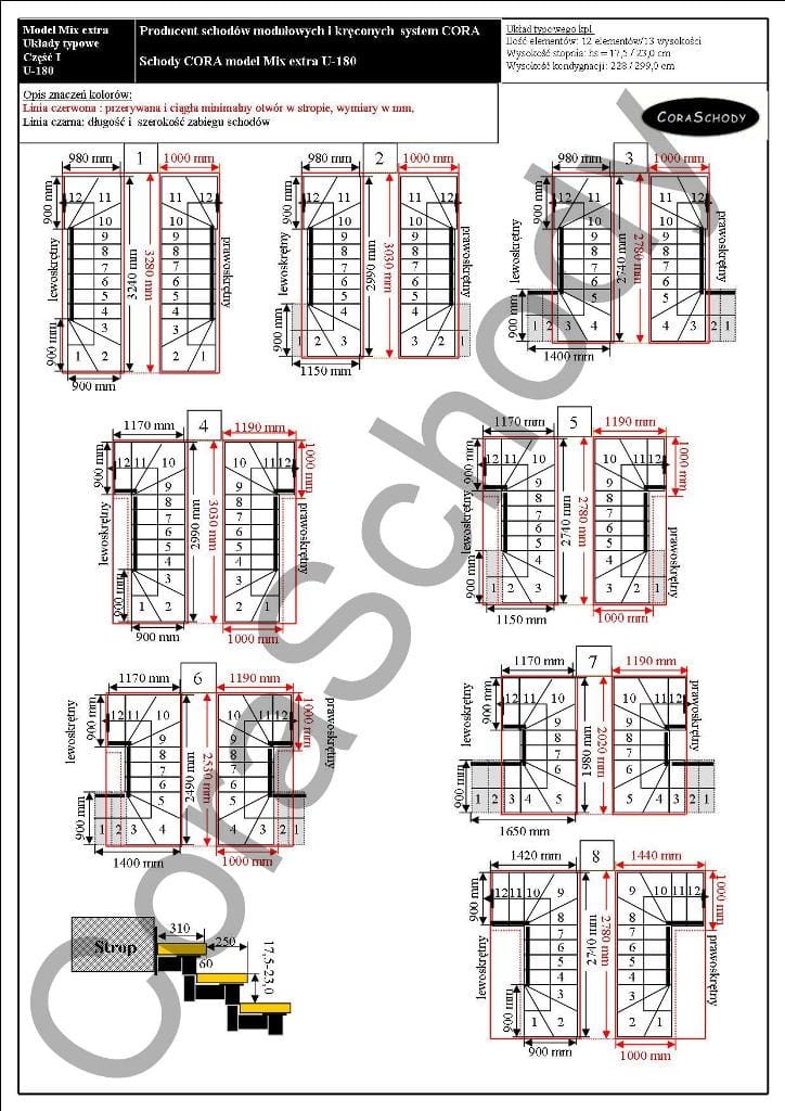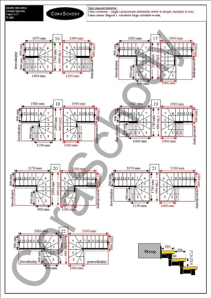 Schody Mix Extra 08 lze namontovat v jedné ze 44 konfigurací, plně prezentovaných výrobcem. Tento model má originální úpravu U-180, pravou i levou. Jednoduché ošetření je možné objednat po přidání anotace do objednávkového formuláře.