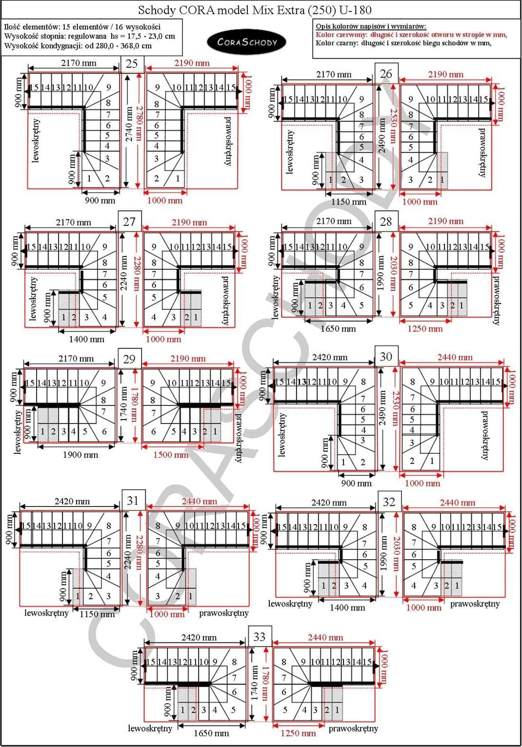 Schody Mix Extra 09 lze namontovat v jedné ze 78 konfigurací, plně prezentovaných výrobcem. Tento model má originální úpravu U-180, pravou i levou. Jednoduché ošetření je možné objednat po přidání anotace do objednávkového formuláře.