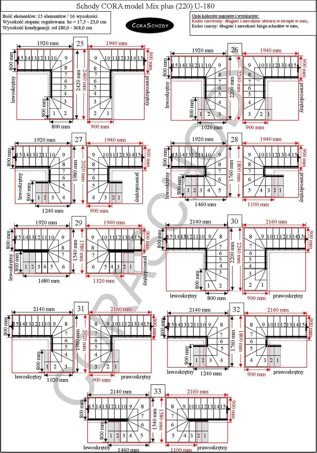 Schody Mix Plus 00 lze namontovat v jedné ze 44 konfigurací, plně prezentovaných výrobcem. Tento model má originální úpravu U-180, pravou i levou. Jednoduché ošetření je možné objednat po přidání anotace do objednávkového formuláře.