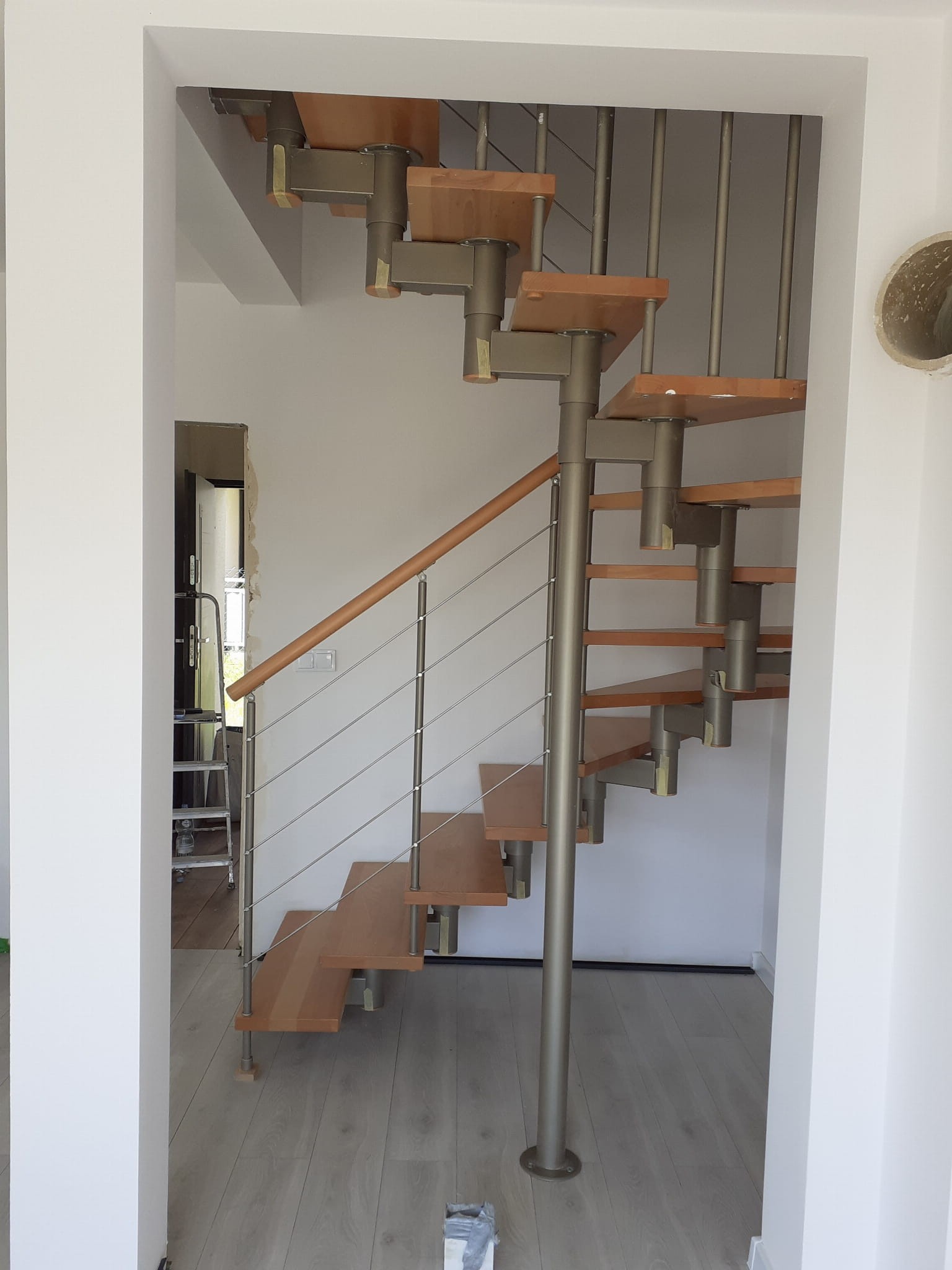 Schody by měly částečně vést ke zdi. Nesmí být dále než 5 cm od stěny. Souvisí to s bezpečností používání schodů. Nezbytností je kotva do zdi.