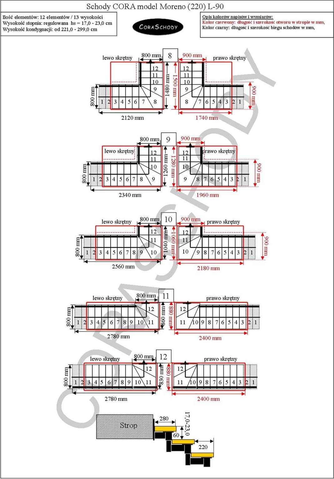 Die Treppe Moreno 220 08 kann in eines der 24 vom Hersteller vorgestellten Systeme eingebaut werden. Die Treppenbehandlung erfolgt in der ursprünglichen L-90-Torsionsform, links oder rechts, sowie in einem ungewöhnlichen geraden Verlauf – in diesem Fall sollte dem Formular eine entsprechende Anmerkung hinzugefügt werden.