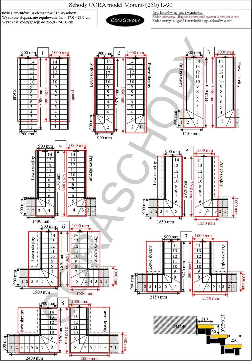 Die Treppe Moreno 250 08 kann in eines der 28 vom Hersteller vorgestellten Systeme eingebaut werden. Die Treppenbehandlung erfolgt in der ursprünglichen L-90-Torsionsform, links oder rechts, sowie in einem ungewöhnlichen geraden Verlauf – in diesem Fall sollte dem Formular eine entsprechende Anmerkung hinzugefügt werden.