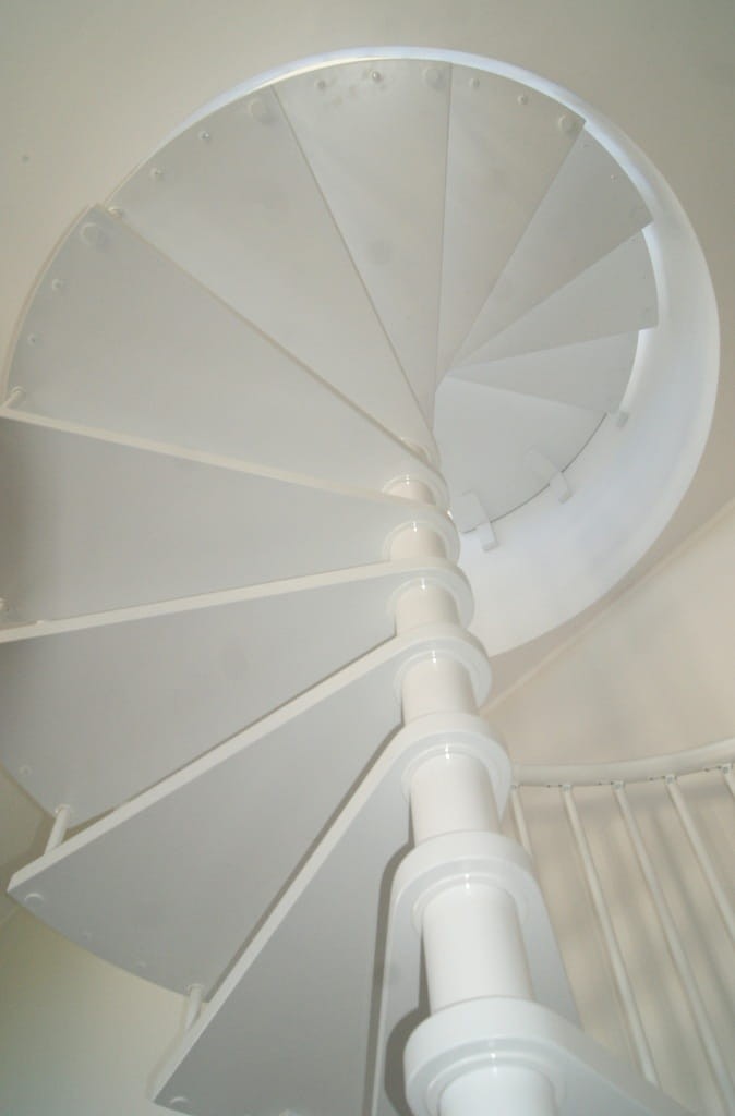 Die angebotenen Wendeltreppen passen in zwei Arten von Öffnungen in der Decke und haben abhängig davon unterschiedliche Podeste. Dreieckige Podeste passen in runde Öffnungen. Dreieckige und trapezförmige Plattformen sind auf quadratische Öffnungen abgestimmt. Die Treppe in diesem Modell hat eine rechte und linke Behandlung. Je nach Konzept sind sie universell montierbar.
