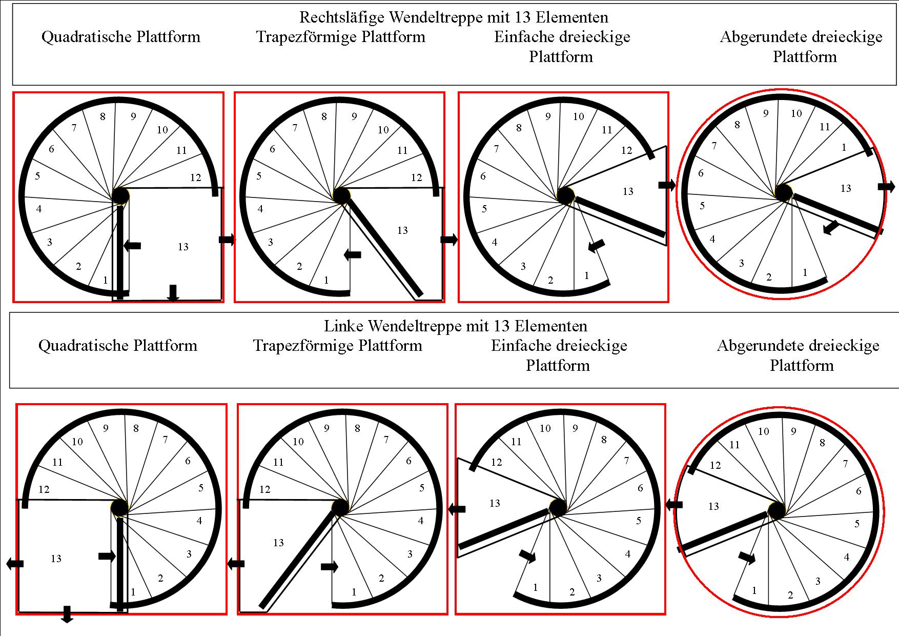Anzahl Elemente: 13 Stück (12 Stufen + 1 Podest)