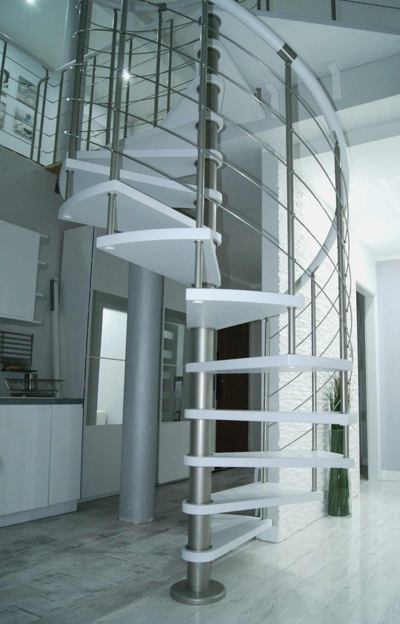 Die angebotenen Wendeltreppen passen in zwei Arten von Öffnungen in der Decke und haben abhängig davon unterschiedliche Podeste. Dreieckige Podeste passen in runde Öffnungen. Dreieckige und trapezförmige Plattformen sind auf quadratische Öffnungen abgestimmt. Die Treppe in diesem Modell hat eine rechte und linke Behandlung. Je nach Konzept sind sie universell montierbar.