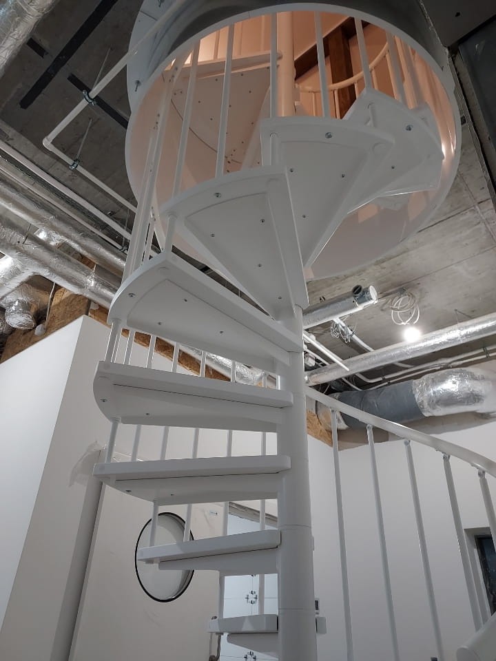 Die angebotenen Wendeltreppen passen in zwei Arten von Öffnungen in der Decke und verfügen je nach Bedarf über unterschiedliche Podeste. Dreieckige Plattformen passen in runde Löcher. Dreieckige und trapezförmige Plattformen sind an quadratische Öffnungen angepasst. Die Treppen in diesem Modell verfügen über eine Rechts- und Linksbedienung. Je nach Konzept sind sie universell einsetzbar.