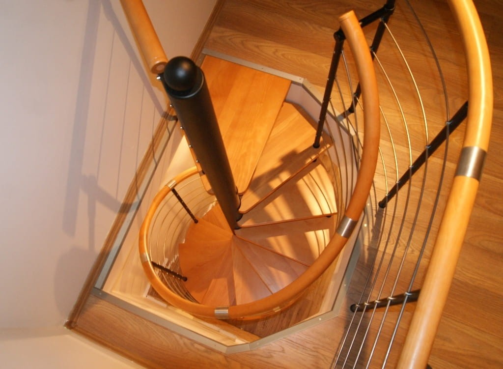 Die angebotenen Wendeltreppen passen in zwei Arten von Öffnungen in der Decke und haben abhängig davon unterschiedliche Podeste. Dreieckige Podeste passen in runde Öffnungen. Dreieckige und trapezförmige Plattformen sind auf quadratische Öffnungen abgestimmt. Die Treppe in diesem Modell hat eine rechte und linke Behandlung. Je nach Konzept sind sie universell montierbar.
