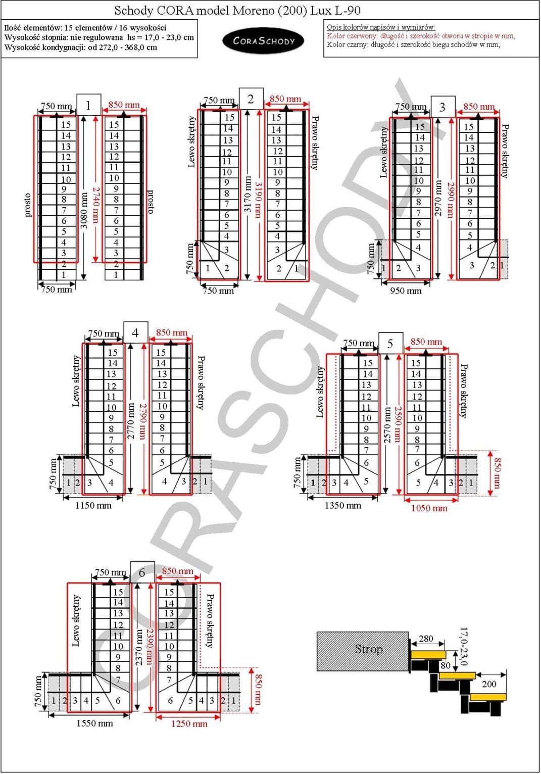 Moreno 200 Lux Treppen können in eines der 30 vom Hersteller vorgestellten Systeme eingebaut werden. Die Treppenbehandlung erfolgt in der originalen L-90 Torsionsform, links oder rechts, sowie einem ungewöhnlich geraden Verlauf – in diesem Fall sollte eine entsprechende Anmerkung zur Form hinzugefügt werden.