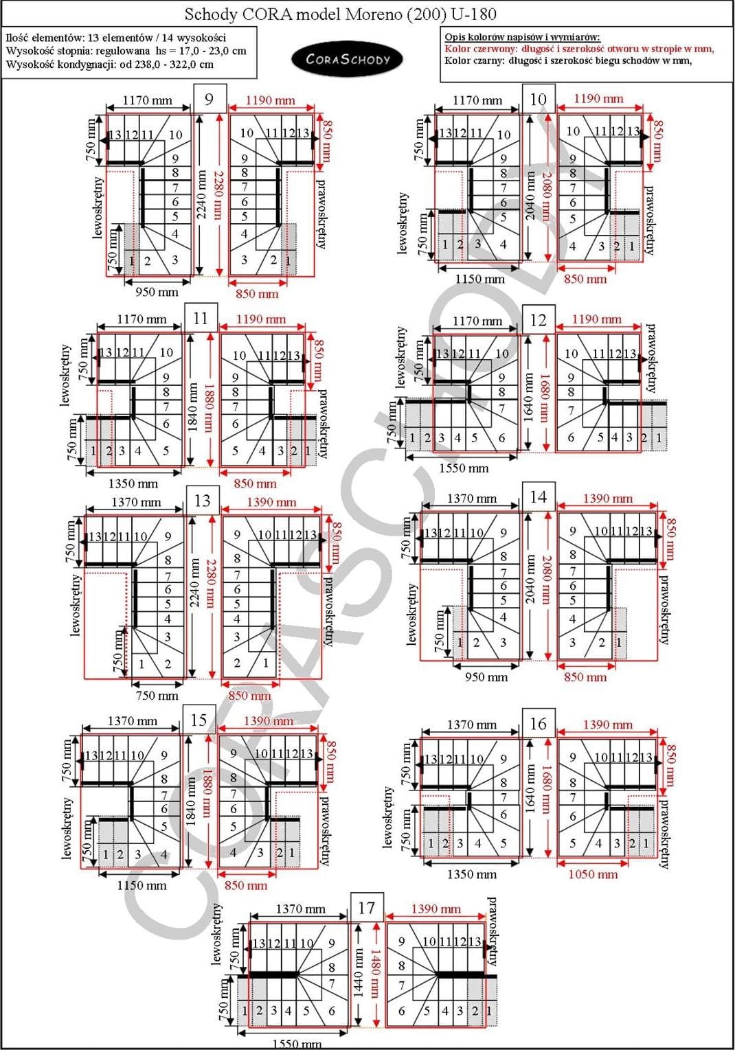 Moreno 200 Treppen haben die Möglichkeit, sie in einer von 52 Konfigurationen zu montieren, die vom Hersteller vollständig präsentiert werden. Dieses Modell hat sowohl rechts als auch links eine originale U-180-Behandlung. Es ist möglich, ein einfaches Verfahren zu bestellen, nachdem Sie Anmerkungen zum Bestellformular hinzugefügt haben.