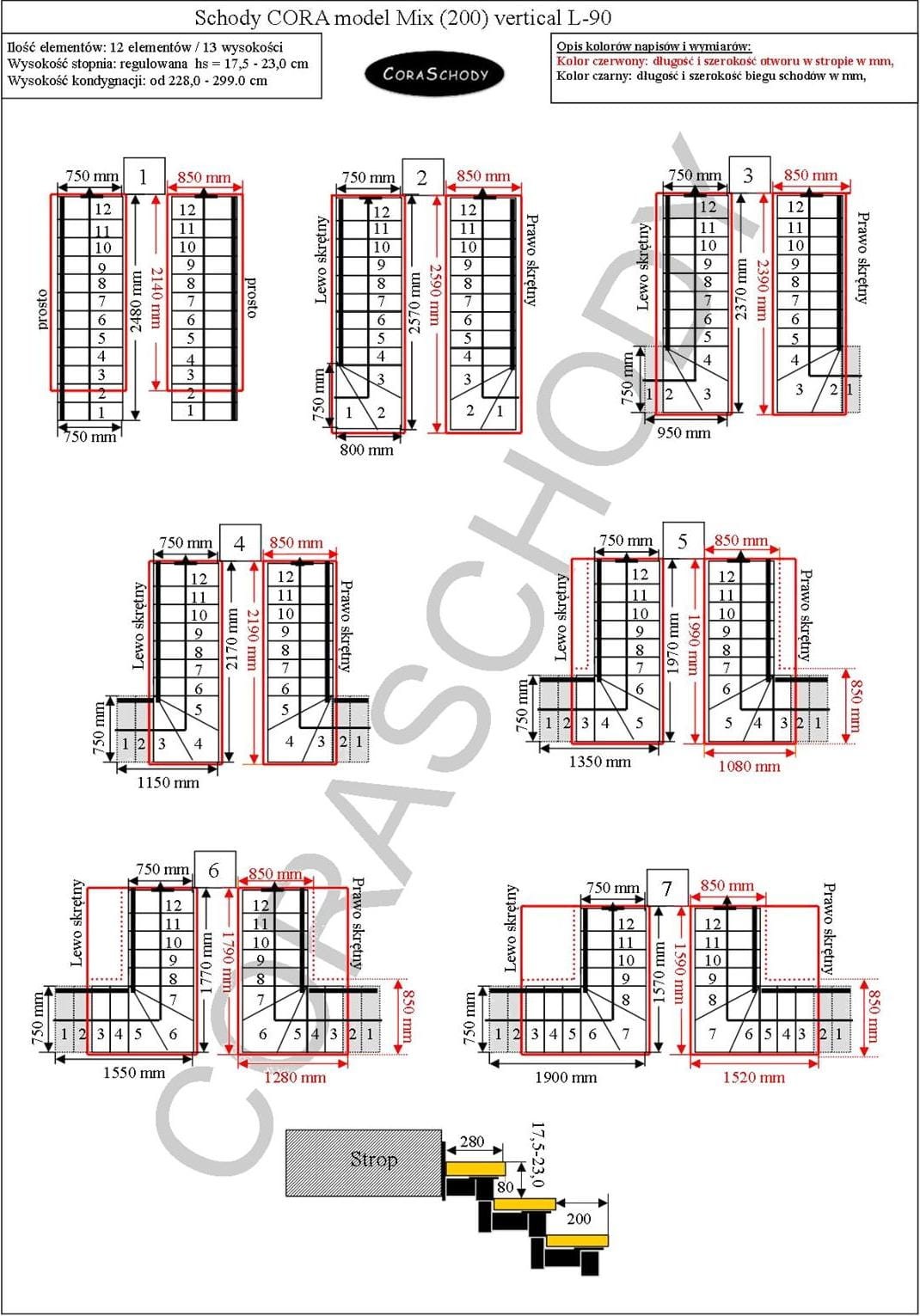 Die Treppe Mix 200 kann in eines der 24 vom Hersteller vorgestellten Systeme eingebaut werden. Die Treppenbehandlung erfolgt in der originalen L-90 Torsionsform, links oder rechts, sowie einem ungewöhnlich geraden Verlauf – in diesem Fall sollte eine entsprechende Anmerkung zur Form hinzugefügt werden.