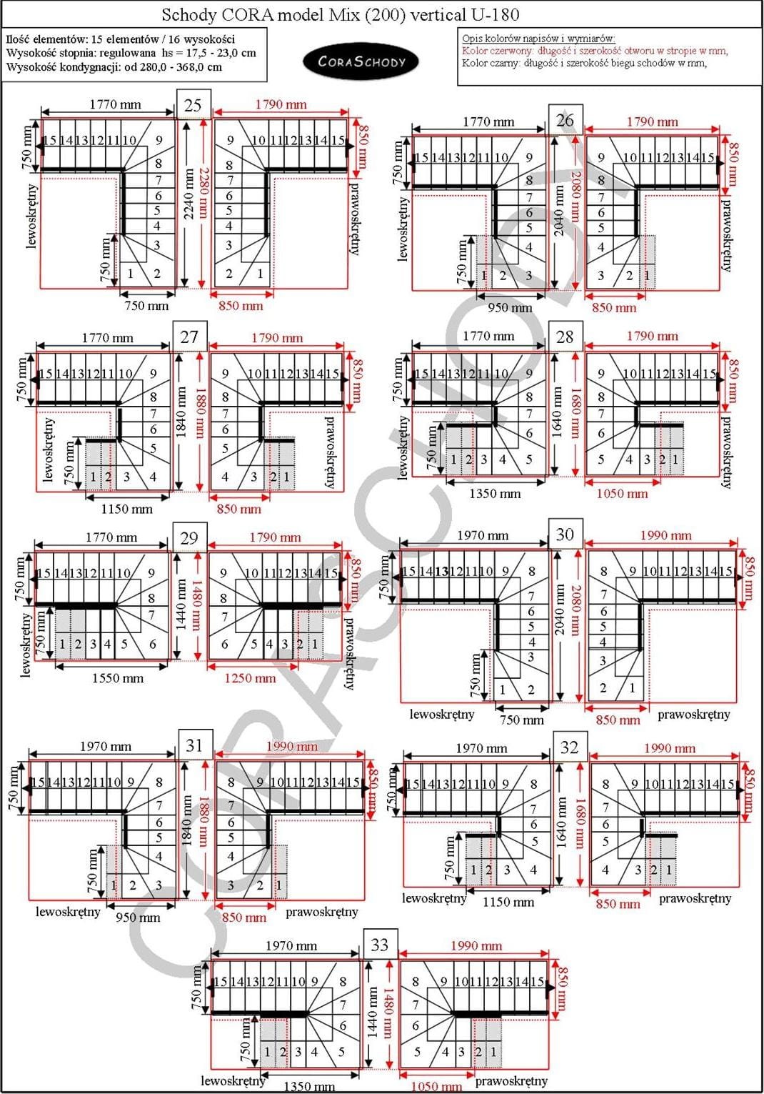 Die vertikale Treppe Mix 200 kann in einer von 78 Konfigurationen installiert werden, die alle vom Hersteller vorgestellt werden. Dieses Modell hat sowohl rechts als auch links eine originale U-180-Behandlung. Es ist möglich, ein einfaches Verfahren zu bestellen, nachdem Sie Anmerkungen zum Bestellformular hinzugefügt haben.
