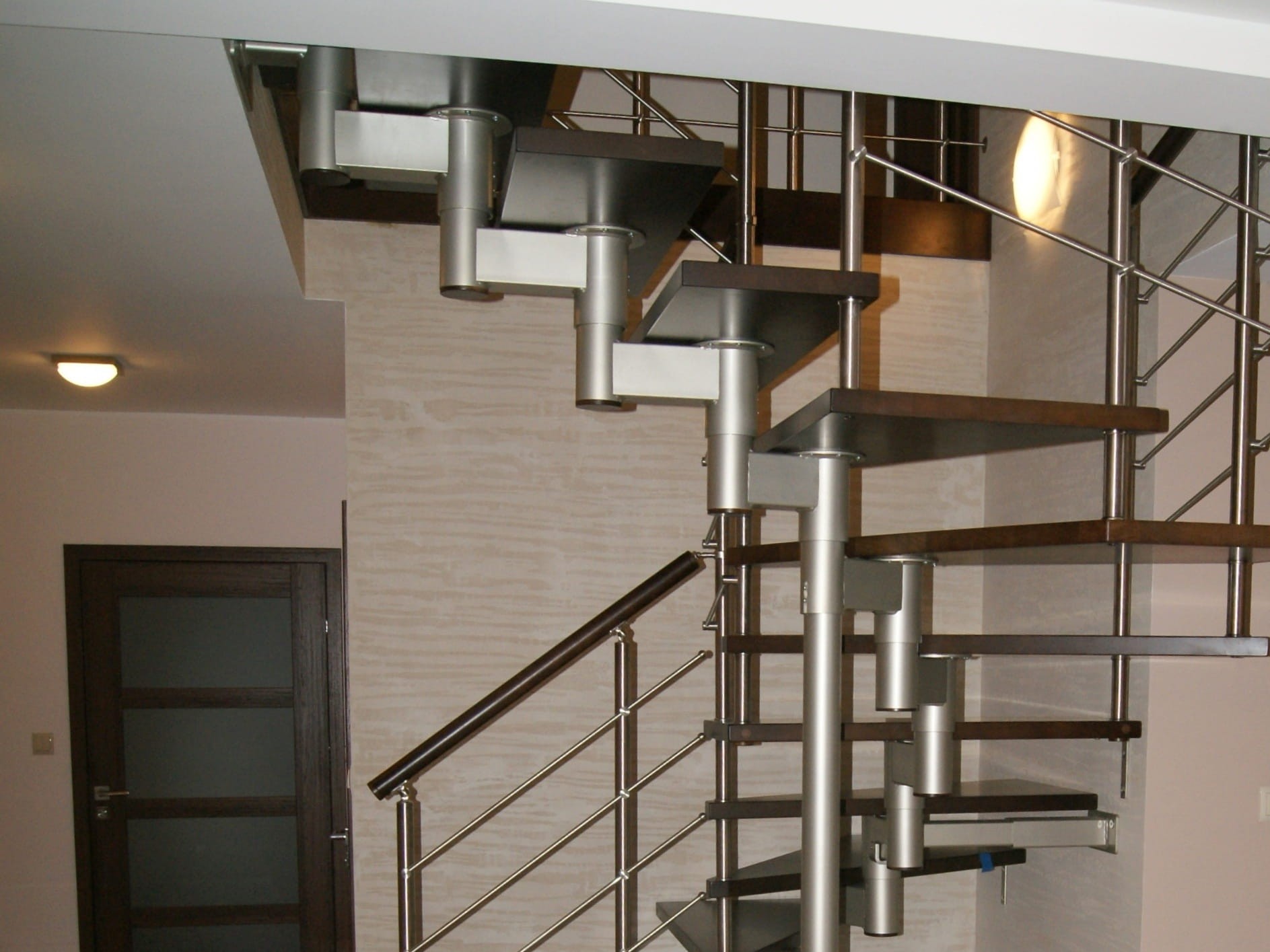 Die Treppe sollte teilweise gegen die Wand laufen. Sie dürfen nicht mehr als 5 cm von der Wand entfernt werden. Dies bezieht sich auf die Sicherheit bei der Benutzung der Treppe. Es ist notwendig, den Anker an der Wand anzubringen.