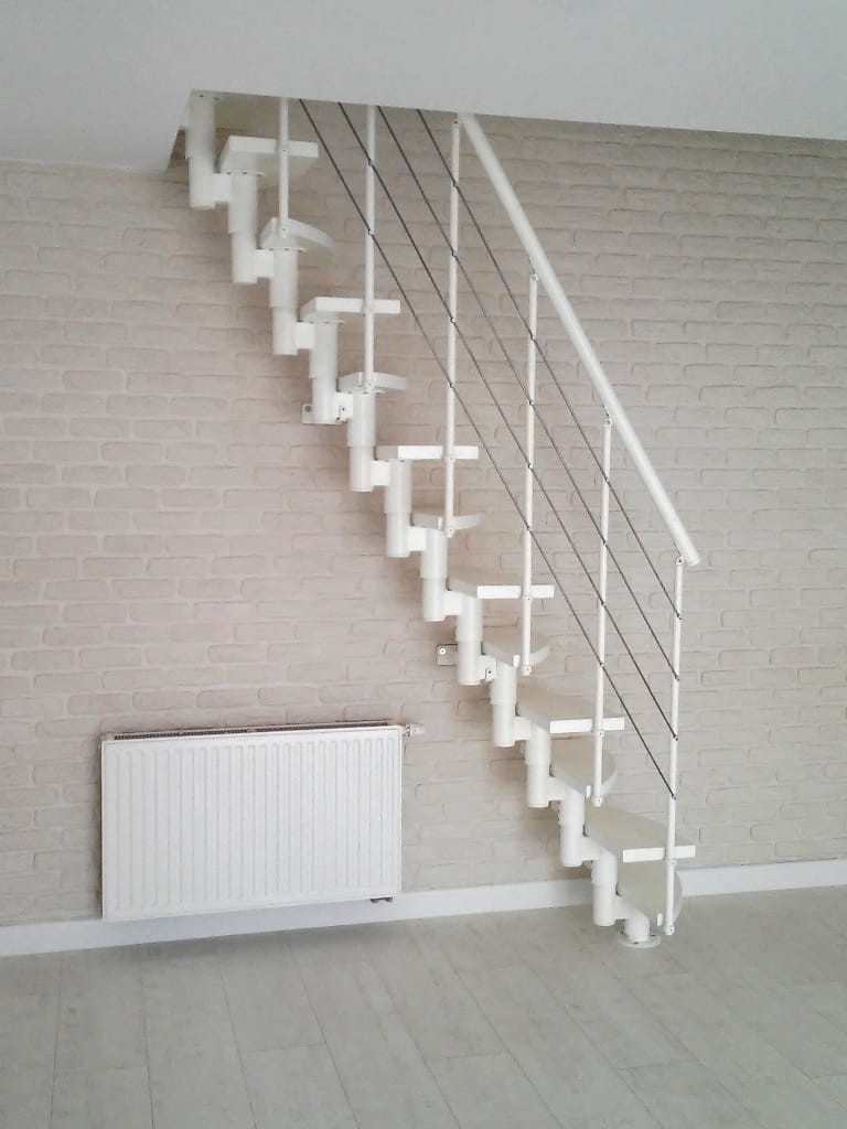 W zestawie znajduje się 14 elementów schodów, składanych na 15 poziomów. Elementy wykonane są przede wszystkim z litego drewna (kolor do wyboru z palety barw przedstawionej przez producenta) oraz stali malowanej proszkowo w kolorze białym (RAL 9003). Po zamówieniu usługi za dopłatą, profesjonalnego montażu na terenie kraju dokonuje producent.