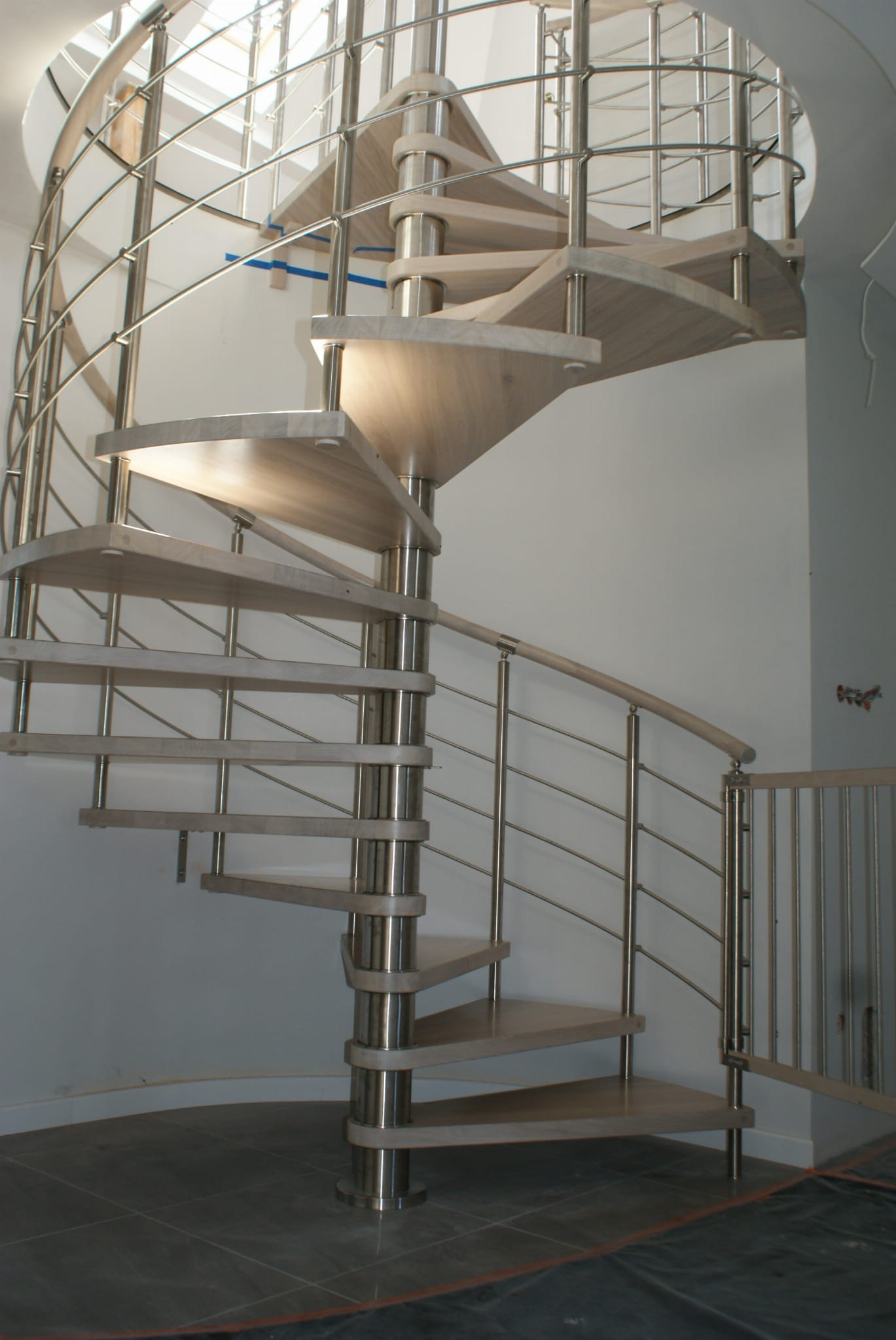 Zestaw schodów spiralnych przystosowanych do średnicy otworu w stropie o wartości 190 cm. Elementy wykonano z litego drewna (kolor do wyboru z palety barw producenta) oraz stal nierdzewna szlif. Można montować je samodzielnie, lecz producent udostępnia również usługę montażową za dopłatą.