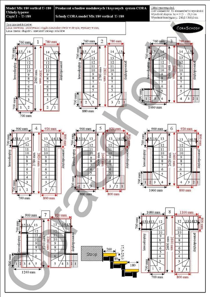 Schody metalowe CORA model Mix 180 vertical U-180 15 elementów