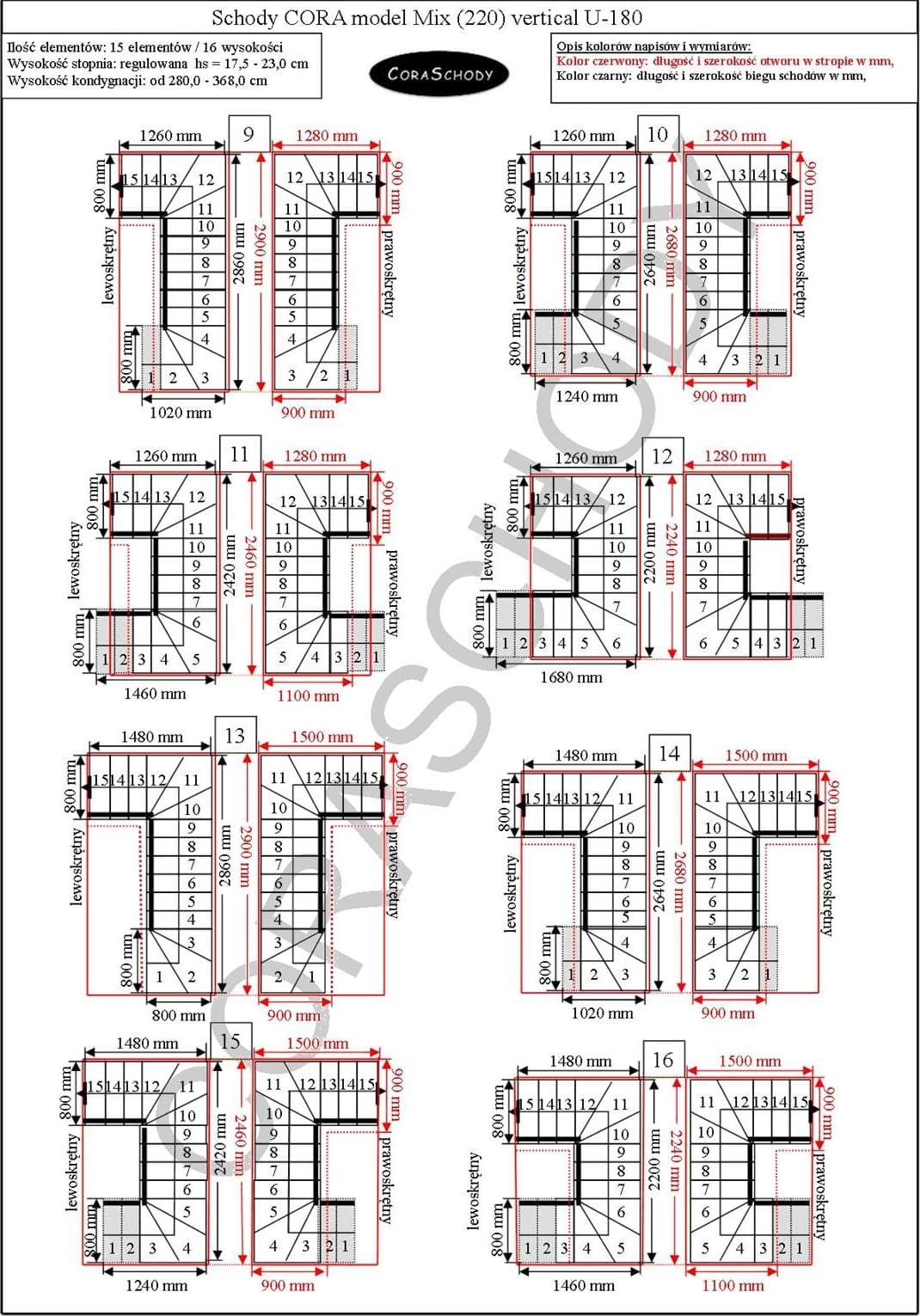 Schody metalowe CORA model Mix 220 vertical U-180 15 elementów