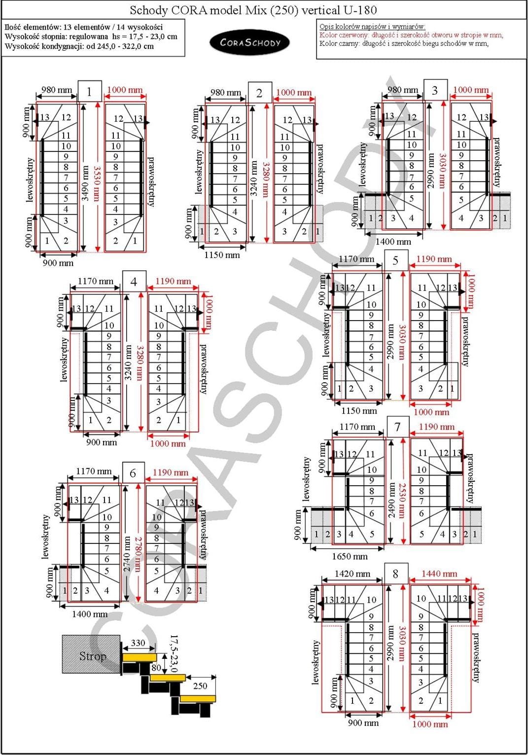 O ile nie można dopasować schodów według poniższych konfiguracji, schematów wykonamy schody nietypowe na wymiar.