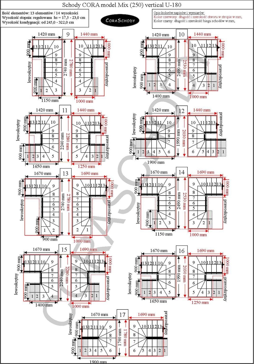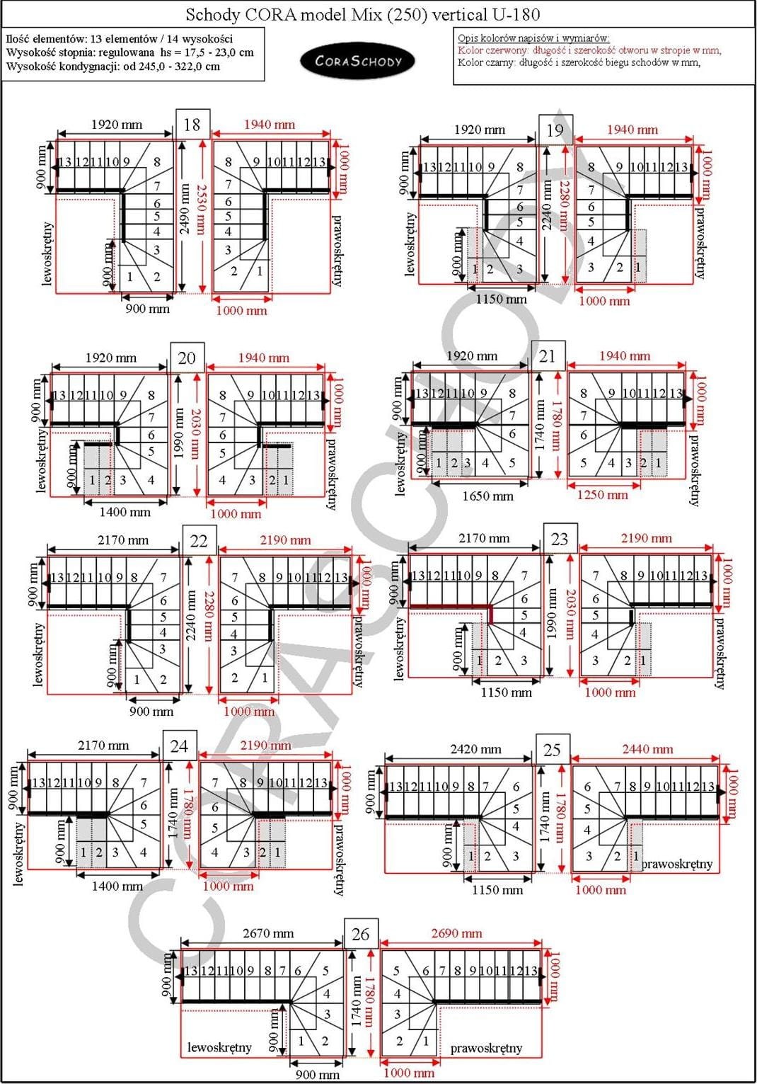Schody metalowe CORA model Mix 250 vertical U-180 13 elementów